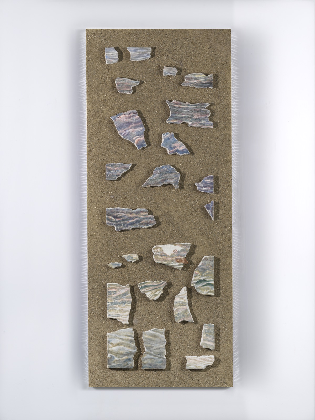 Ventiquattro frammenti di affresco, intonaco, marmo Radica, aerolam realizzato su misura