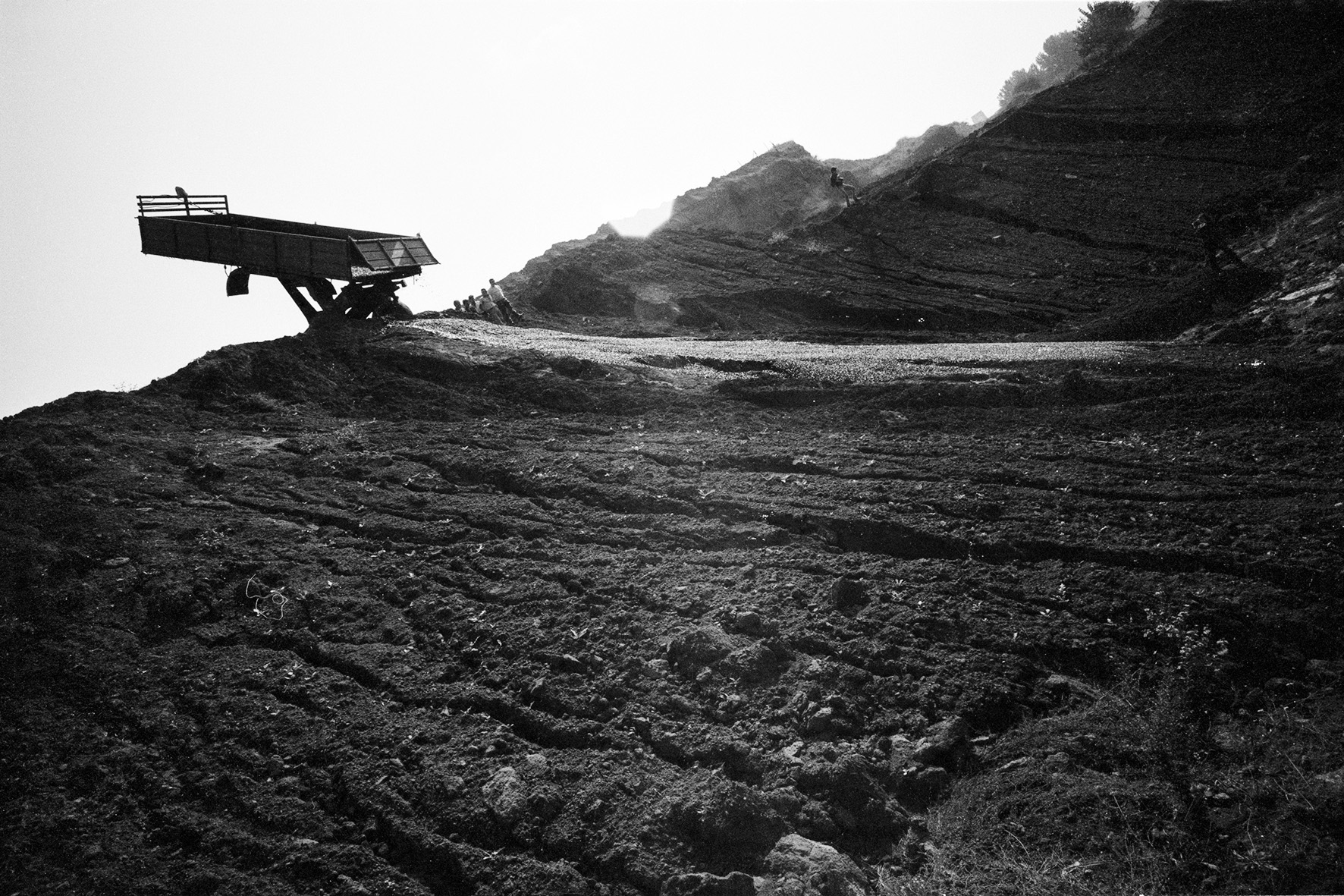Il 15 ottobre 1969 Robert Smithson (1938-1973) realizza l’azione Asphalt run down a Roma. Questo primo intervento di Land Art dell’artista in Italia, organizzato da L’Attico, viene documentato da Abate. L’azione prevedeva lo svuotamento di un camion di asfalto sul pendio di una cava di selce sulla via Laurentina, che il fotografo riprende da diversi punti di vista e nei momenti precedenti all’esecuzione. Smithson, che aveva visitato Roma la prima volta nel 1961, aveva grande interesse per la cultura italiana: alcuni dei suoi primi dipinti si ispirano alla Divina Commedia dantesca, ed era affascinato dall’influenza della religione sull’Arte.